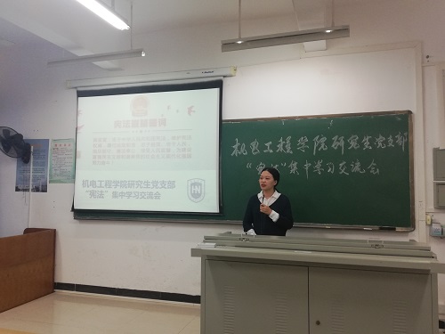 为了进一步落实中共中央关于深入学习宣传和贯彻实施宪法的有关精神,响应“国家宪法宣传周”和海南省“法治宣传月”号召,做好宪法的学习宣传工作,12月8日下午,世界杯体育官方网站研究生党支部于5教120教室召开“宪法”集中学习交流会。世界杯体育官方网站研究生党支部全体党员和积极分子参加了此次会议。党支部书记施晓佳同志主持了此次交流会。