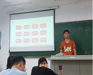 首先,由邵煜潇同学传达了会议精神,并简要介绍了会议流程。接着,邵煜潇同志主持开展会议流程第一项,全体起立奏唱国歌,同志们对着红旗慷慨激昂唱起国歌。