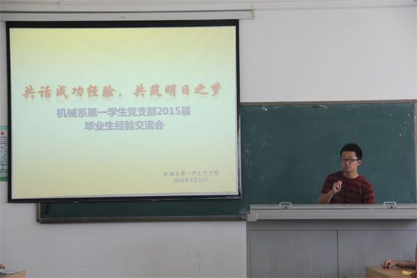 5月24日下午15时,世界杯体育官方网站机械系第一学生党支部在4教110举行主题为“共话成长经验,共筑明日之梦”的毕业生交流会。支部全体成员参加本次会议,会议由支部副书记张小峥主持。