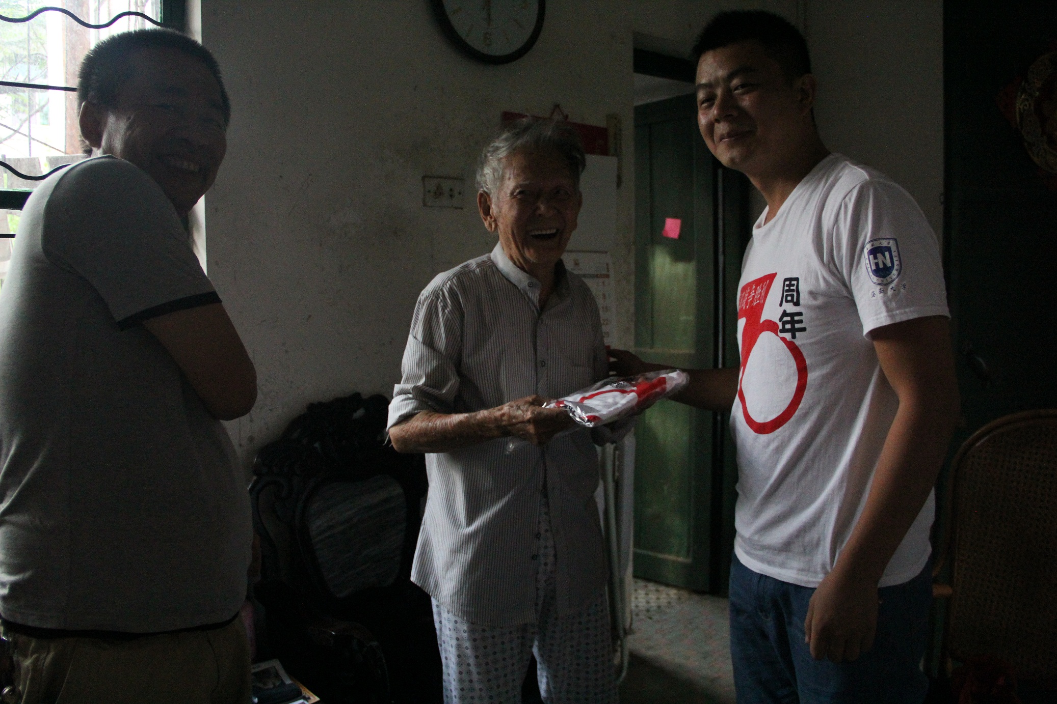 崔建兵老师为老人赠送纪念服