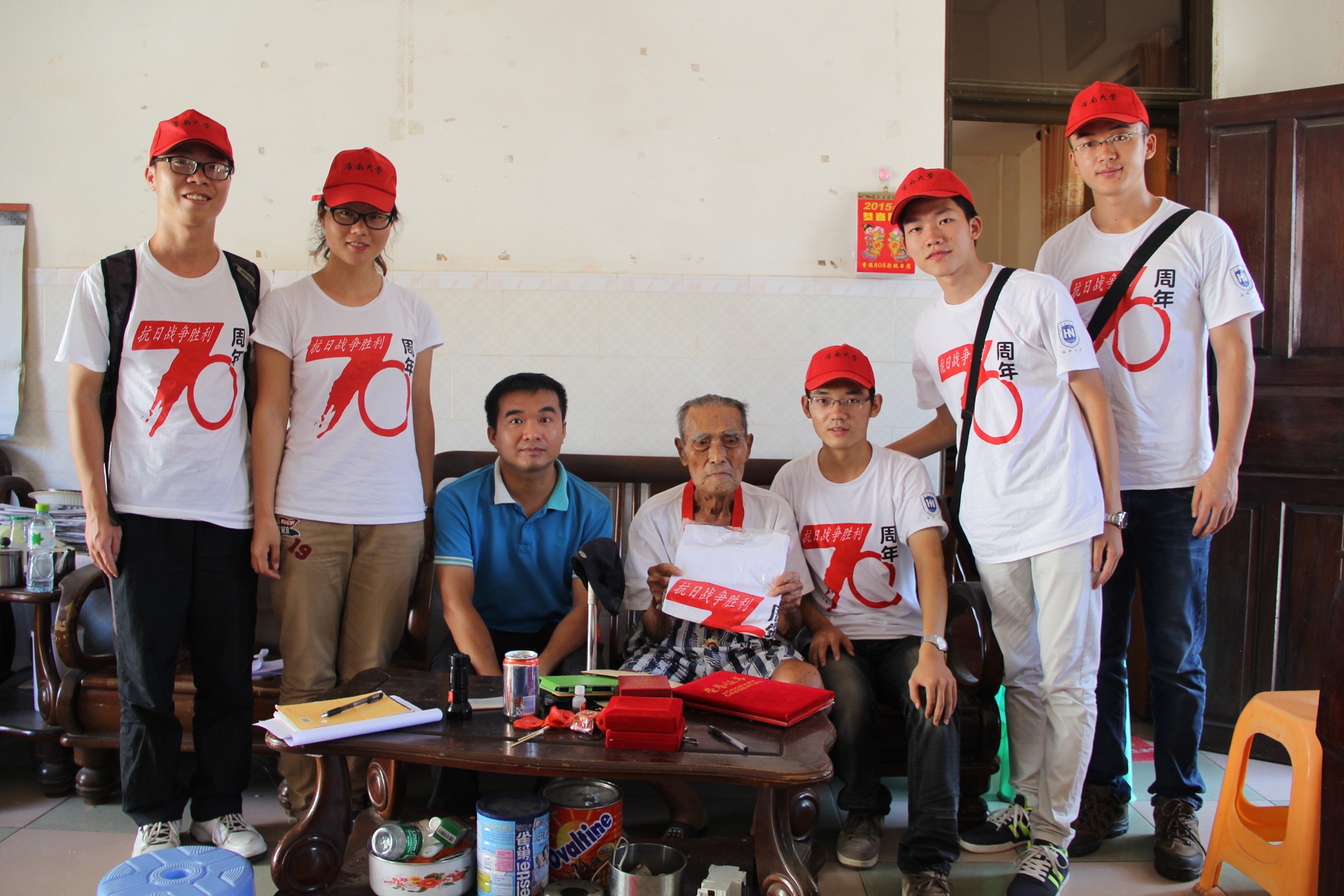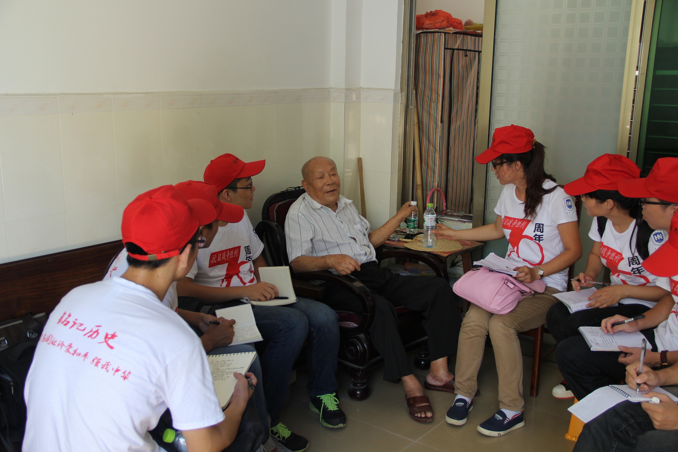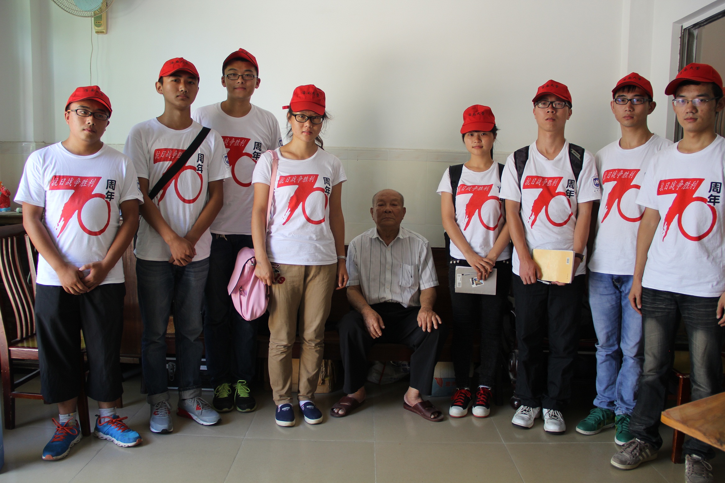 2015年是中国人民抗日战争暨世界反法西斯战争胜利70周年,为缅怀抗战先烈,传承革命精神,由团中央学校部、人民日报社政文部发起的全国大学生纪念抗战胜利七十周年寻访活动。8月7日,由中共琼海市委宣传部、世界杯体育官方网站组建的纪念抗战胜利70周年寻访团一行16人,赴琼海市军休所、万泉镇探访抗战老兵。
