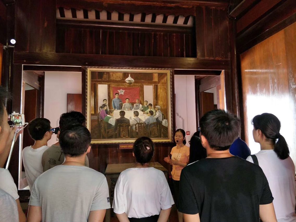 在党的十九大即将召开之际,10月2日下午3:00,机械系学生党支部在海口市中共琼崖一大旧址开展以“不忘初心跟党走,青春喜迎十九大”为主题的支部特色党课活动。出席活动的有红军后代罗曼阿姨、支部书记崔建兵老师、机械系学生党支部的全体党员。会议由支部副书记吴林萍主持。