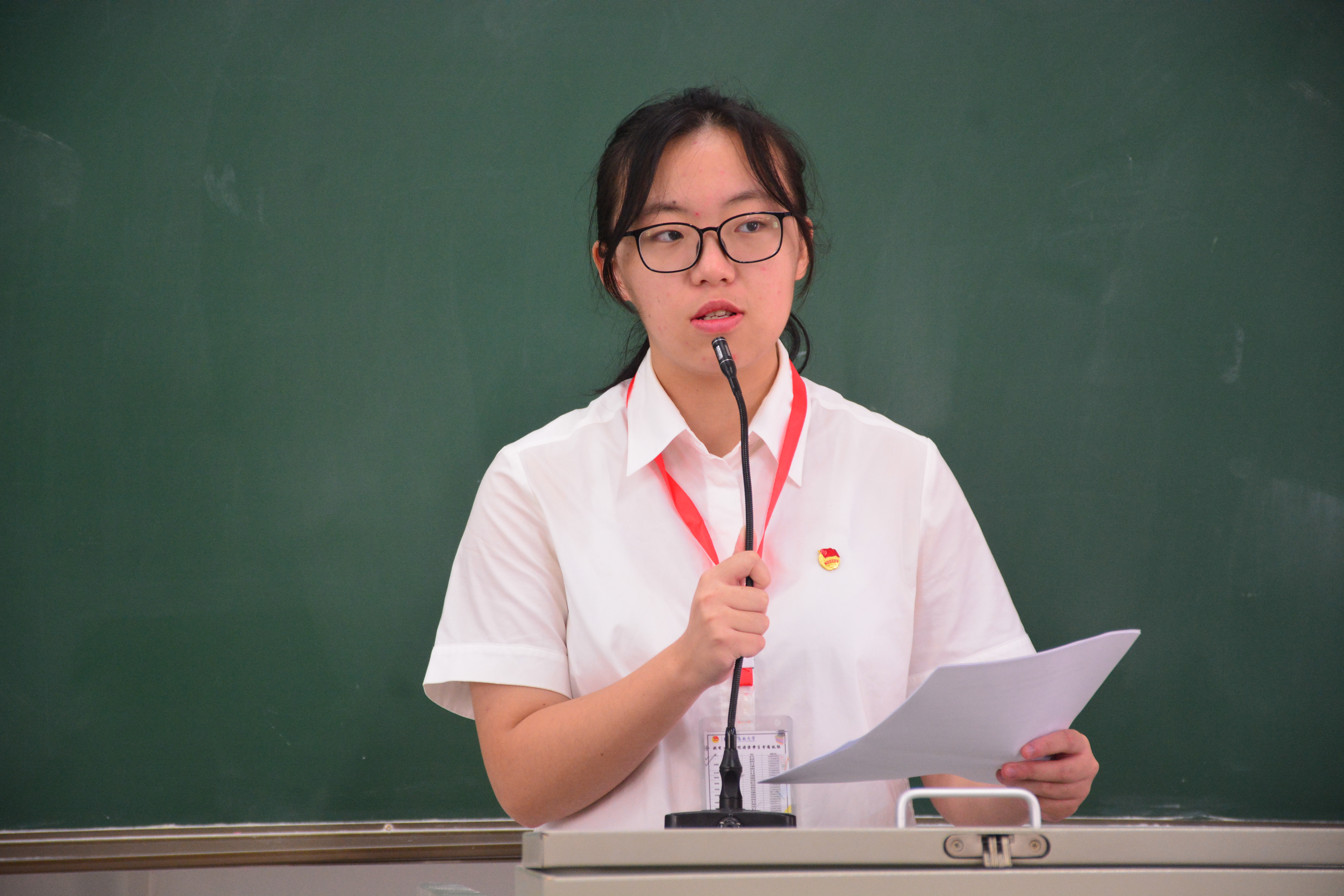 开营仪式第四项,世界杯体育官方网站团委学生会副书记黄已倩发言。她首先介绍了近年来学院的光辉历史。此后,她从大一新生的新生孵化活动到学院的开学典礼再到今天的干事培训大会,介绍了本学期以来学院团委学生会组织的各项活动。她也向在座的学院领导和学生干部们保证,团委学生会各个部门会通力合作,为学院工作顺利开展保驾护航。