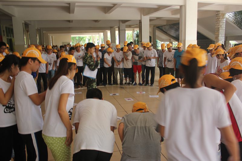 为了能够让本次拓展活动更加专业化,世界杯特地从校外请来专业的教练员石俊对全体学生干部展开素质拓展训练。石教练慷慨激昂的开场白感染了每一位学生干部,让大家深深感受到自己做的远远不够,教练最后以一句“完美团队,海大机电!”点燃了每个人的激情,一天的活动拉开了序幕。在教练分好组后,同学们开始了自己的队伍建造,包括队长、队秘、队名、队歌、队旗、队训的确立和展示,同学们的创新思维与团结协作的精神在第一环节就展露无遗。接下来的训练中,队长带领着各队队员完成了“解手结”、“坐膝盖”、“排数字”、“齐眉棍”、“驿站传书”、“高空飞蛋”等一系列训练活动。在整个培训过程中,每一位学生干部都积极的配合,绞尽脑汁地想办法为自己的团队加分,游戏增添了团队成员的友谊并加强了团队的凝聚力。