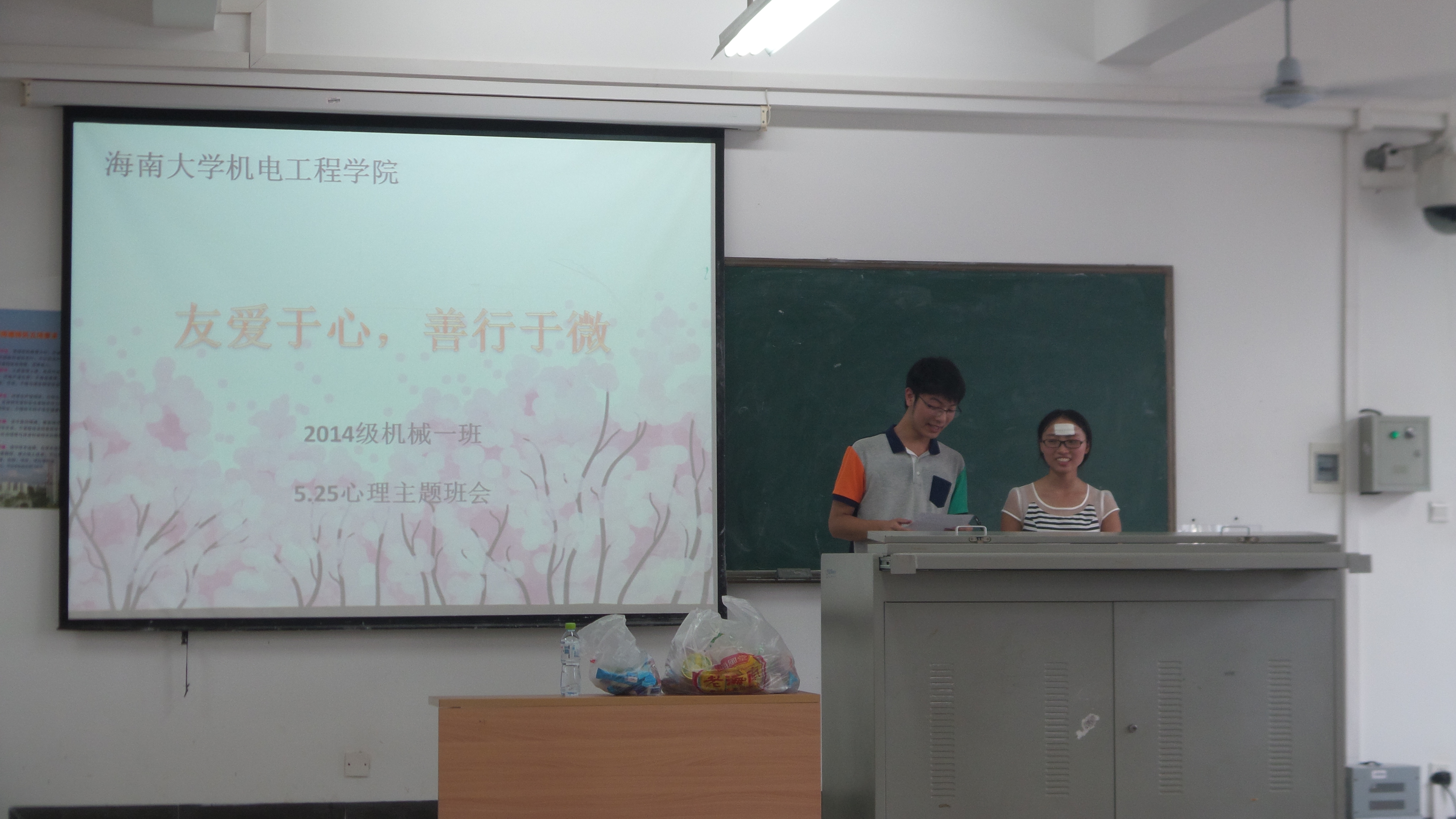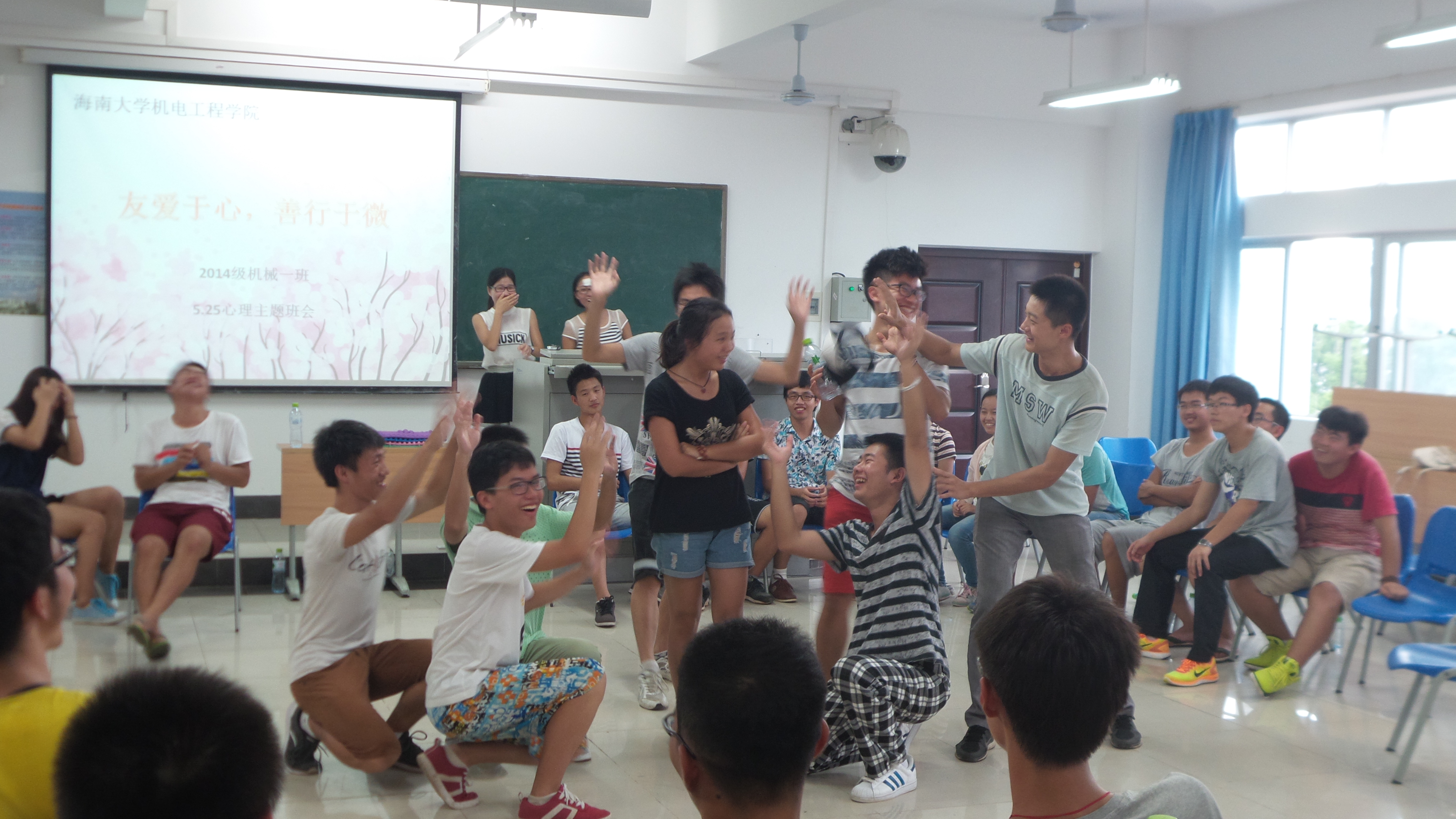 为了增强世界杯学生的心理健康意识,提高自我调适能力,促进大学生心理健康教育工作的开展。按照学校5.25心理活动月的统一安排,5月26日下午四点三十,2014级机械设计制造及其自动化1班在4教412举行了“友爱于心,善行于微”主题心理团体辅导班会。李青老师以及14级机械1班全体学生参加了此次班会。