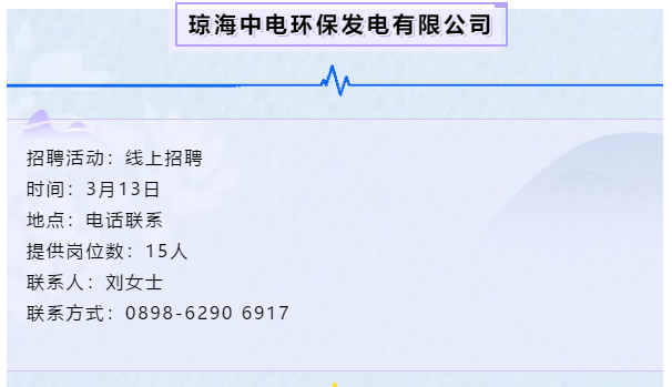 琼海中电环保发电有限公司校园招聘