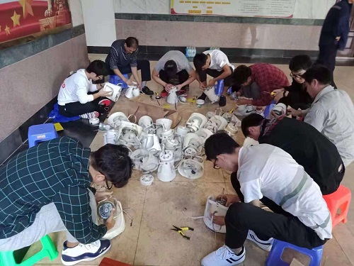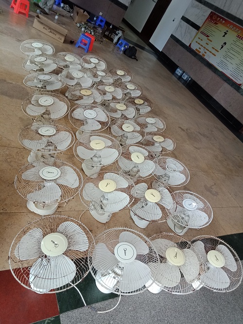 活动以动手更换学生宿舍电风扇电机和清洗电风扇扇叶为主。师生事务保障中心的冯运斌老师首先带领机械系党支部的同学们清洗已经拆装下来的风扇扇叶和外框,风趣幽默地为大家讲解了风扇各组成部分及其所承载的功能。紧接着,在两位电工师傅的热情引导下,支部成员积极思考,将课堂上所学的有关机械和电机知识运用实际,熟练地拆解电机、安装电容、接线、对位拧螺丝顺利地完成了电机和电容的更换。经过三个小时的共同努力,所有宿舍的风扇都得到了清洗更换,支部成员在这次活动中展现出的专业知识素养和吃苦耐劳的优良品质得到了师生事务保障中心及学生的广泛好评。