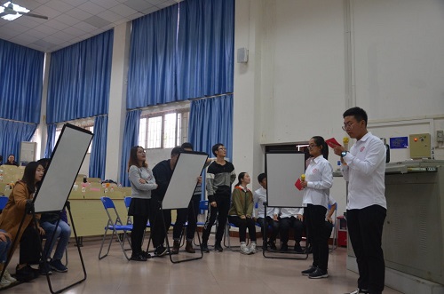 活动分为两大部分。第一部分为知识竞赛,比赛形式多样,内容新颖,涵盖党的十九大报告、4.13讲话精神,中央十二号文,共进行三轮。试题类型种类丰富,除了传统的选择题,填空题更增添了看图答题,听曲答题,看片答题,充分体现了趣味性与全面性。第二部分为各党支部风采展示,展示得分将计入最后总成绩中,最终各党支部按照所得分数高低排名。活动两部分交错进行,张弛有度,井然有序。参赛的队伍分别是研究生党支部的科研未来队、致远班党支部的Yellow River、团学党支部的使命队、电气系党支部的全都队、机械系党支部的展翅高飞队和汽车系党支部的朗诵梦之队。本次竞赛秉着公平、公正、公开的原则有序开展。