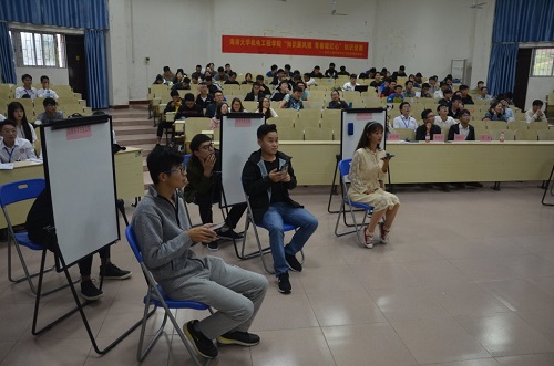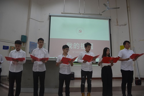 第二轮比赛结束后,电气系党支部带来《我的祖国》诗歌朗诵,表达了对祖国的赤忱之心,接着是机械系党支部带来的弹唱《欧若拉》,优美的歌曲让人仿佛置身于海大的椰林小道。而在汽车系党支部的朗诵《这个夏天,海南很“热”》中,则让人感受到勤奋向上,舍我其谁的青春活力。
