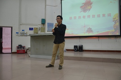 徐曾沛老师上台对本次知识竞赛进行总结。他对于本次活动的开展表示了充分的肯定,并表达了他的三点感谢:第一点,感谢六个学生党支部在临近期末能如此认真准备试题,准备表演;第二点,感谢党建联席会各个成员不辞辛劳,辛苦筹备活动的策划,宣传和道具等事宜;第三点,感谢在座各位同学能够抽出时间参加本次活动积极学习党的相关知识。对于活动的评价,徐曾沛老师给出了“惊艳”二字。他说,活动内容丰富有趣,现场气氛活泼,充分展现了世界杯学子的热情与活力,希望能够继续保持机电学子的风采。同时,徐曾沛老师也希望,通过这次党建知识竞赛,大家能够逐渐跳出学生的层次视角,去主动了解国家的政策方针,能明白自己将来将在社会中扮演的角色,在社会中发光发热,知晓如何从学校过渡到社会,争取未来能在社会中继续发光发热。他表示,通过观看了这场活动,他在各位同学身上看到了国家、民族以及海大的希望。最后,徐老师希望大家不忘初心,在接下来的工作学习中再接再厉。