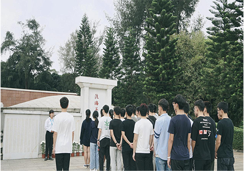 全体成员到达烈士陵园后,于英雄纪念碑前为全体革命先烈朗诵诗歌,同时默哀一分钟以寄托对先烈的哀思,并由班级同学代表向革命先烈献花。随后,同学们跟从引导员深入了解了每一个纪念碑背后可歌可泣的英雄故事。