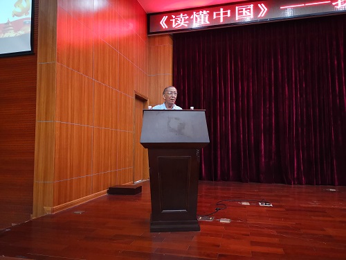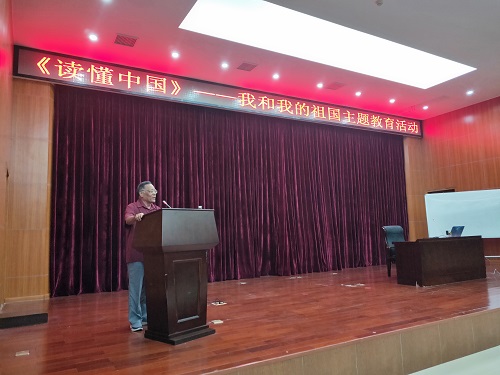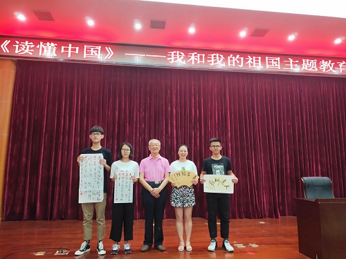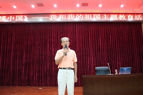 活动开始程儒参教授作《我和我的祖国》专题报告。程教授认为,要正确读懂中国,就要把握三个重要时代的特点与意义:毛泽东时代,让中国人民站起来;邓小平时代,让中国富足起来;习近平新时代,让中国强大起来。他满怀激情地讲述了他对于三个时期的感受理解,让同学们进一步理解了“没有共产党就没有新中国”这句话的深刻含义,正是有了中国共产党的领导,才有了今天幸福得生活。程老表示会一直关心教育事业心系下一代,为一代又一代青年学生毕生精力,并感谢教育厅、学校和组织对自己的厚爱。
