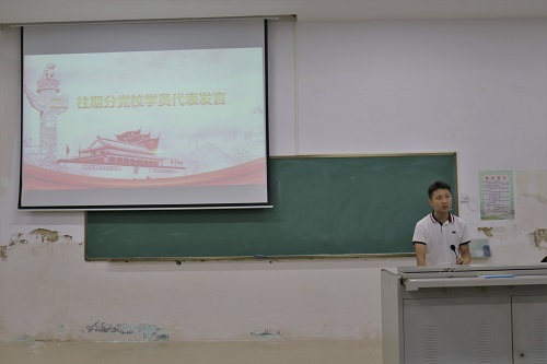 活动伊始,蒋云浩同志代表往期学员发言,他明确了自身定位,既是学生,亦是党员,学生便要专心于学业,用心于自身的发展,党员则是自身精神的寄托,是由信仰而驱动自身奉献社会的力量。他表示,发展对象培训班教会了他勇于担当,甘于奉献的精神。