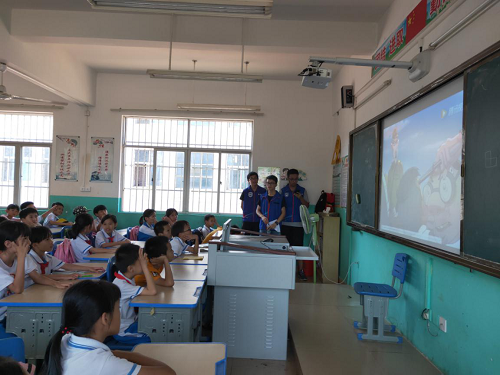 支部成员们在下午14:30从世界杯体育官方网站北门乘坐大巴出发,前往大林小学。海南的四月,虽然天气异常炎热,党员们却热情不减。在课堂上,支部成员们首先通过有奖知识竞答的方式,生动有趣地为同学们介绍了什么是红色精神、五四爱国运动、红色经典与革命精神,随后播放了相关的视频引导同学们一起探讨学习。支部成员们共同表演了以“五四爱国运动”为主题的话剧,再一次带领大家体会这场具有里程碑意义的革命运动中,爱国青年们勇于奉献,不怕流血牺牲的伟大精神!
