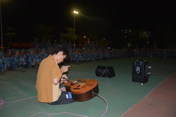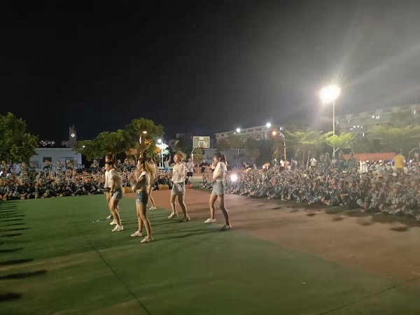 慰问后,学生党建联席会和各学生党支部为新生送上舞蹈,吉他,歌唱等精彩表演。舞队为新生带来的开场舞曲start form zero, 极具节奏感的舞蹈,让整片篮球场都洋溢着青春的气息,瞬间激发了同学们的热情。歌曲《我害怕》和《失眠飞行》,优美的歌声让新生沉浸于其中,流露着意犹未尽的景象。吉它社带来的节目指弹《雷鸣》,演绎着他的大学生活,时而如杨柳般安静沉稳,时而如雷鸣般高调响亮,让同学们惊叹不已。歌曲《仰望星空》,仰望星空,张开双臂,飞向你所渴望的那颗星,飞向你所想要的大学生活,激发了新生们对大学美好生活的向往与渴望。