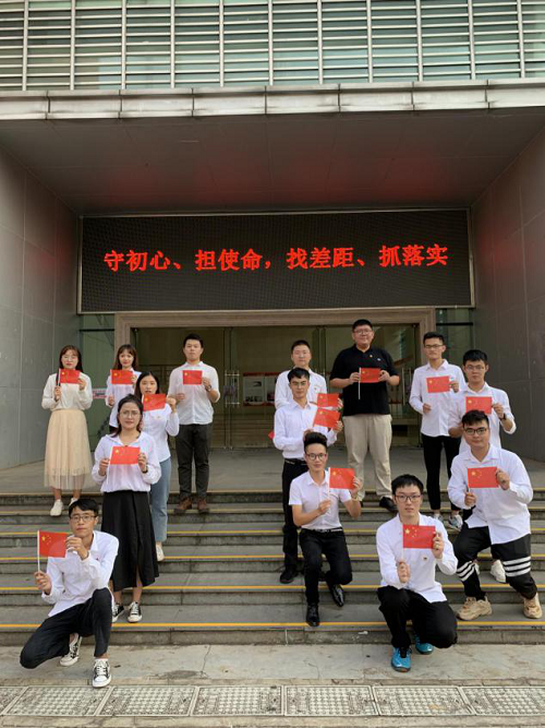 2019年10月1号下午4时,世界杯体育官方网站致远班党支部先后在思源学堂正门、联谊馆正门、行政楼国旗下参加“国旗在我心中”——我和国旗同框活动。支部书记张小其老师、党员和积极分子14人共同参加。