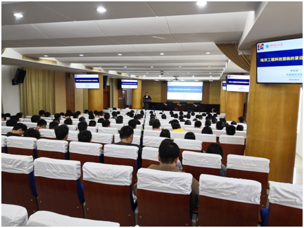 李华军院士围绕“海洋工程科技”这一核心主题,分别从海洋对人类的生存与发展、海洋开发利用面临的挑战、海洋工程科技的发展现状以及海洋工程科技面临的紧迫需求这四个主要方面进行了深入浅出、层层递进的讲解。李院士指出,海洋是一个巨大无比的能源宝库,海洋中蕴含的丰富的油气、天然气和各种矿产资源,将成为人类可持续发展的重要依托和争夺焦点。海洋开发利用还面临着诸多难点,针对海洋发展的难点给出了几点建议。首先,发挥物联网、大数据、云计算、人工智能等高新技术对海洋工程行业的推动作用,实现高端海工装备设计、建造、安装与运维的信息化、智能化。其次,创新发展海洋装备的检测、维修以及安全防护的新理论、新方法、新工艺以及新设备。最后,构建全球海洋科教合作网络,促进海洋科技发展与人才培养。在场的教师与学生代表就海洋发展与李院士展开讨论,李院士热情地一一解答了每位老师与学生的问题。