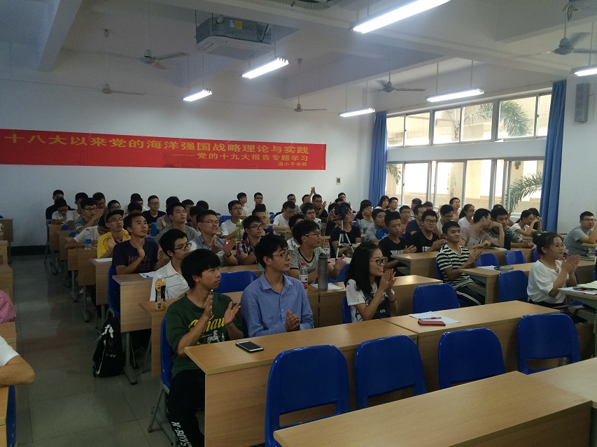 此次学习活动,从海洋强国角度出发,回顾了党的十八大以来海洋强国战略的实施与成就,解读了党的十九大报告中国家对于加快建设海洋强国的方针与部署。旨在告诫处于南海之滨的我们,要不断增强对我国的“海洋国情”的了解,正确认识海权争议,增进维护国家海权的责任感和爱国主义情感。