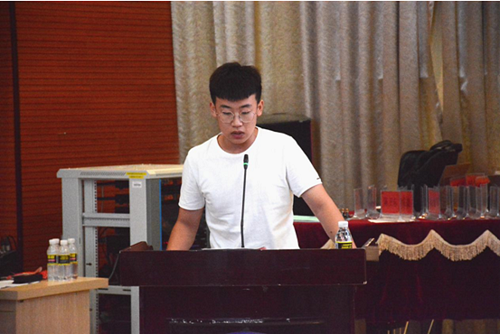 16级黄腾远同学代表车队全体成员表达了对大学生方程式赛车热爱并宣誓将为我校南海车队的发展建言献策。