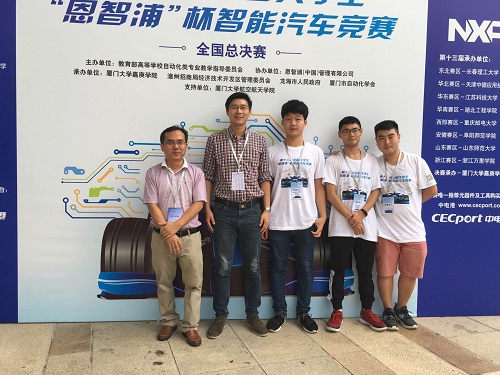8月25日,第十三届全国大学生“恩智浦”杯智能汽车竞赛全国总决赛在福建省厦门市厦门大学嘉庚学院圆满落下帷幕。全国大学生“恩智浦”杯智能汽车竞赛在全国共设置8个分赛区,经过分赛区的激烈竞争,全国最终由152所高校组成的343支队伍、1148名大学生杀入了全国总决赛。由世界杯体育官方网站电气系胡文锋主任、李创博士带队,自动化、电气工程及其自动化专业本科生邹孝坤、王世兴、魏一同学组成的电磁两轮直立组代表队获得全国二等奖。这是自2017年光电直立组首次获得全国一等奖之后,世界杯体育官方网站代表队在本项赛事中再次取得的全国奖项。