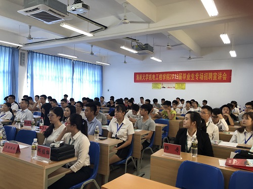 会上,各家企业负责人从公司概况、企业文化、企业员工培养模式、企业目前的发展状况等方面向同学们作了详尽的介绍。其中,海口链家的“链+新生代专业升级计划”以及“注重打造国民品牌”的企业精神深受广大毕业生所认同;中铁铁路运营管理有限公司优越的薪资制度、充满人情味的用人制度以及“多位一体,不拘一格,德才并重,有为有位”的口号更令众人耳目一新。昌江水务局作为朝阳企业,其巨大的发展潜力令众人向往;一嗨租车公司“管培生加速成长计划”、“高管代教”、“赴美学习”等丰富项目亦是深受好评。会议尾声,海口学而思代表与大家分享了他们“科技推动教育进步”的企业理念以及“成为受尊敬的教育机构”的愿景,赢得了大家的掌声。