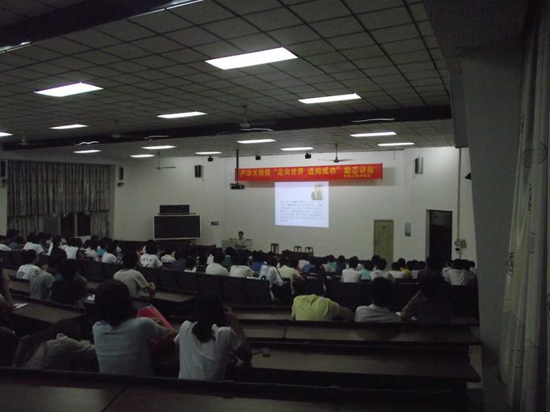 卢教授用自己身边的成功人士海马汽车集团董事长景柱、高盛(亚洲)公司执行董事胡祖六以及汽车行业中佼佼者吉利集团职位董事长李书福、比亚迪股份有限公司董事局主席兼总裁王传福的故事告诉在场的学生如何取得成功、为什么取得成功。同时卢教授用自己漫长又曲折的研发道路——“电路保护与控制系统以及应用该系统的保护控制方法” 国际专利的获得,告诉每一个学生要有理想,永不放弃。