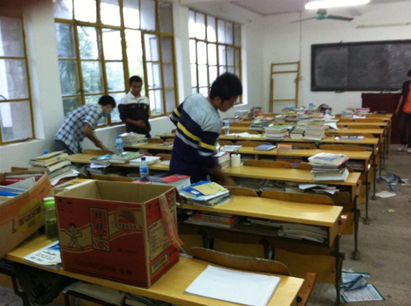 为了不打扰考研学生的学习,09车辆2班全体同学在班委的组织,早上7:00就下来到成教楼,对自习室垃圾的清理和喷撒消毒液。在另一项张贴标语的公益活动则选择在晚上七点钟,标语内容积极向上,催人奋进,如:天行健,君子以自强不息;地势坤,君子以厚德载物。