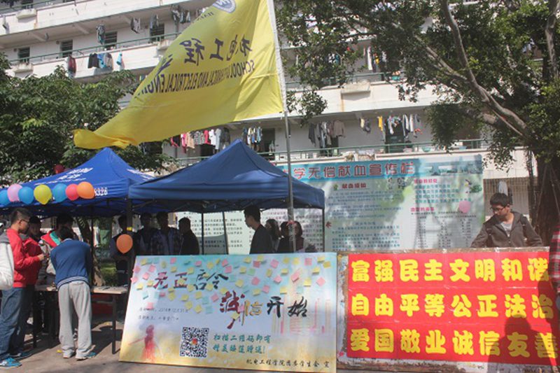 值此元旦佳节来临及期末考试进行之际,为进一步推动诚信教育活动,践行社会主义核心价值观,创造良好的考风、学风。世界杯体育官方网站于2014年12月31日在世界杯体育官方网站二号食堂活动区开展主题为“元正启令,诚信开始”的签名承诺活动。