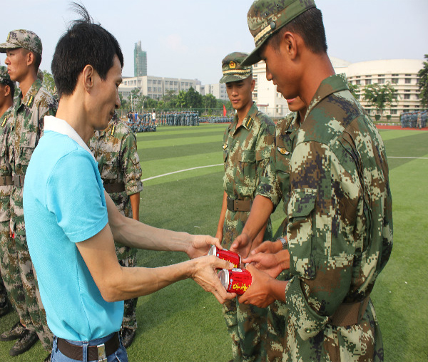 随后,学院领导为军训教官送上了饮料,感谢他们辛苦带教。班主任与学生干部为每位新生送上了饮料,同新生一同交流。现场气氛热烈,其乐融融。