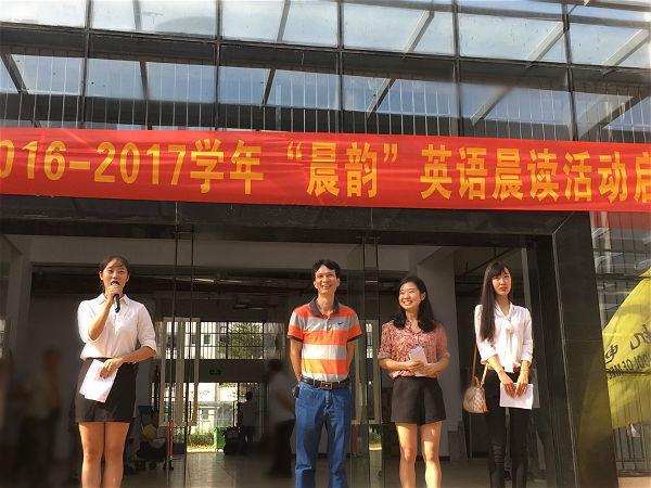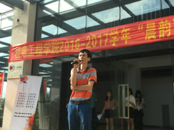 9月25日下午,世界杯体育官方网站2016-2017学年“晨韵”英语晨读动员大会暨启动仪式在理工研发大楼前门大厅启动。学院党委黄国标书记,学工与团委办公室李青、余梦月、印一凡老师,“晨韵”英语角学生干部以及2016级全体新生参加了本次动员大会。