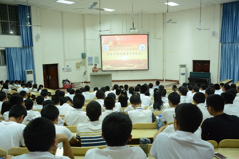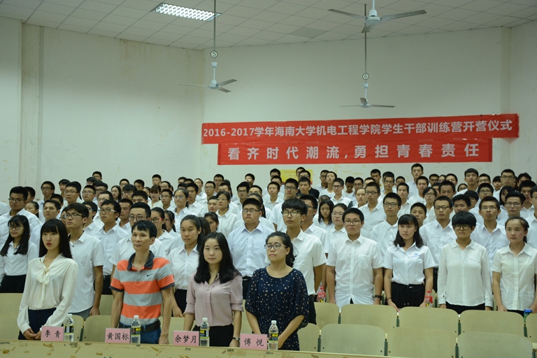开营仪式在庄严的国歌中开始。首先由黄国标书记致辞,他指出学生干部首先应该具有政治意识、大局意识、核心意识、看齐意识;其次应该严格要求自己,做同学当中的示范者、引领者、带动着;第三,学生干部应该具备高度的责任心,关心学院和同学发展,助力民族和国家复兴。