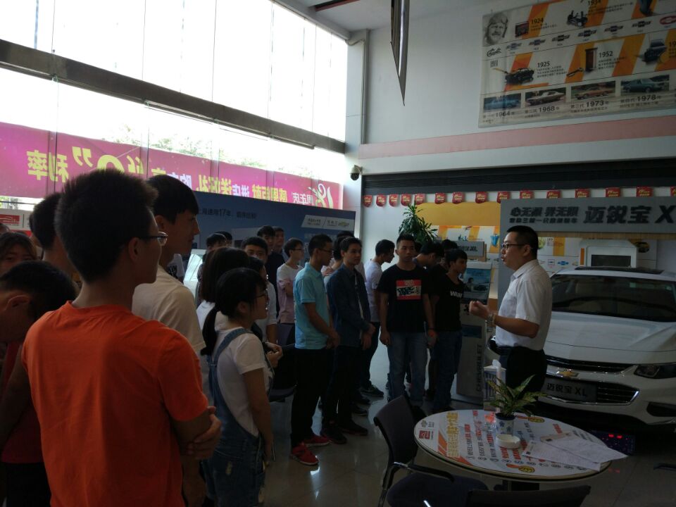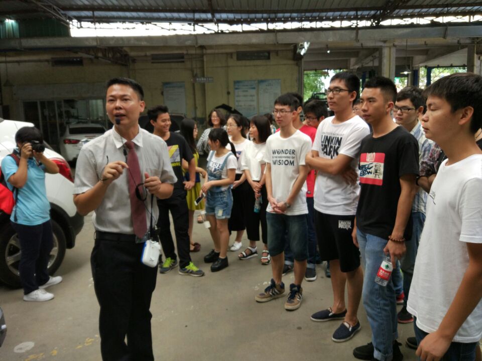 公司的工作人员为同学们热情地讲解了该公司别克、雪佛兰汽车4S店的企业文化、工作岗位和发展前景,带领同学们依次参观了维修车间、喷漆车间、钣金车间、销售前台和展厅布置,并与同学们分享了企业创业历程和市场盈利点,使同学们对“汽车后市场”的定位有了更加深入的认识。每每来到一处地方,工作人员都会停下脚步,耐心而详细地向同学们介绍相关工作常识与注意事项。随后,同学们自主参观,了解企业文化、未来发展趋势及用人选人方式,加深了对公司的了解。