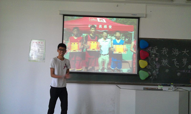 班会由《爱我海大》、《新的精彩》、《和谐班级》《大学梦想》、《为梦想宣誓》五个部分,希望同学们从爱海大、爱老师、爱同学、爱班级,珍惜大学四年美好时光,努力为自己的梦想奋斗。