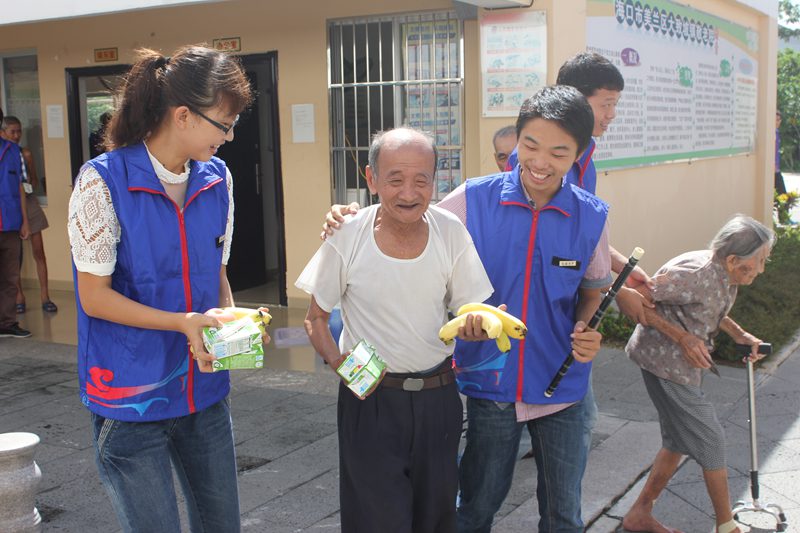 7月15日上午,世界杯体育官方网站“闪亮青春,阳光扶老”暑期“三下乡”志愿服务队走进海口市大致坡敬老院开展爱心亲情陪护活动。