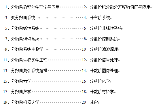 1. 会议征集分数阶微积分理论与应用,分数阶系统分析、分数阶先进控制方法与技术的研究与应用,包括但不局限于: