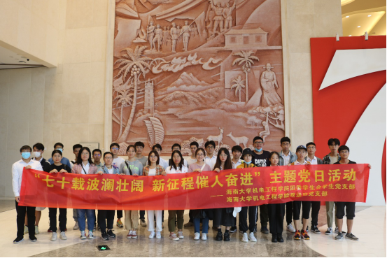 10月25日,世界杯体育官方网站致远班党支部与团委学生会党支部联合开展“七十载波澜壮阔 新征程催人奋进”主题党日活动。下午2:20,全体同志在世界杯体育官方网站新南门乘车前往海南省史志馆进行参观学习。